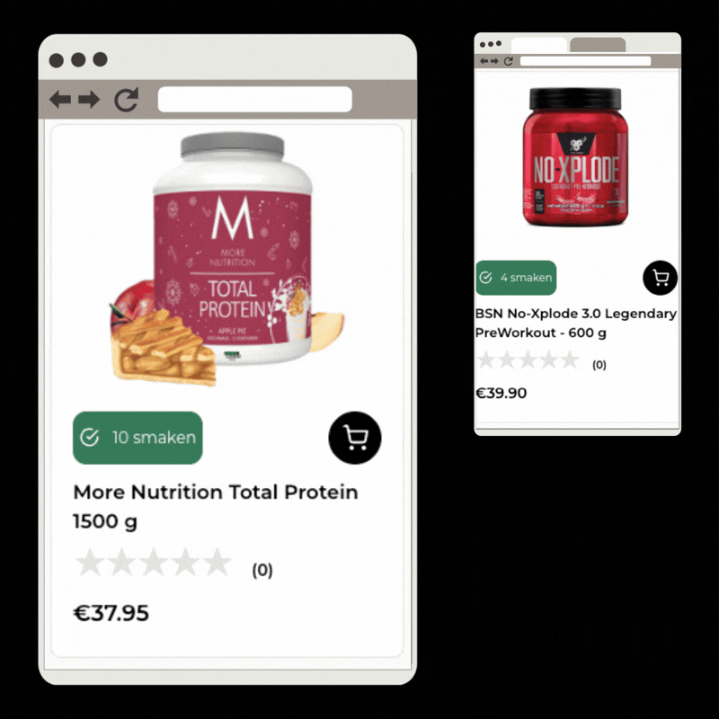 Selecteer eenvoudig uit duizenden producten van eiwitshakes tot sportaccessoires. Jij bepaalt wat in je webshop komt, zonder voorraad of inkoopkosten.